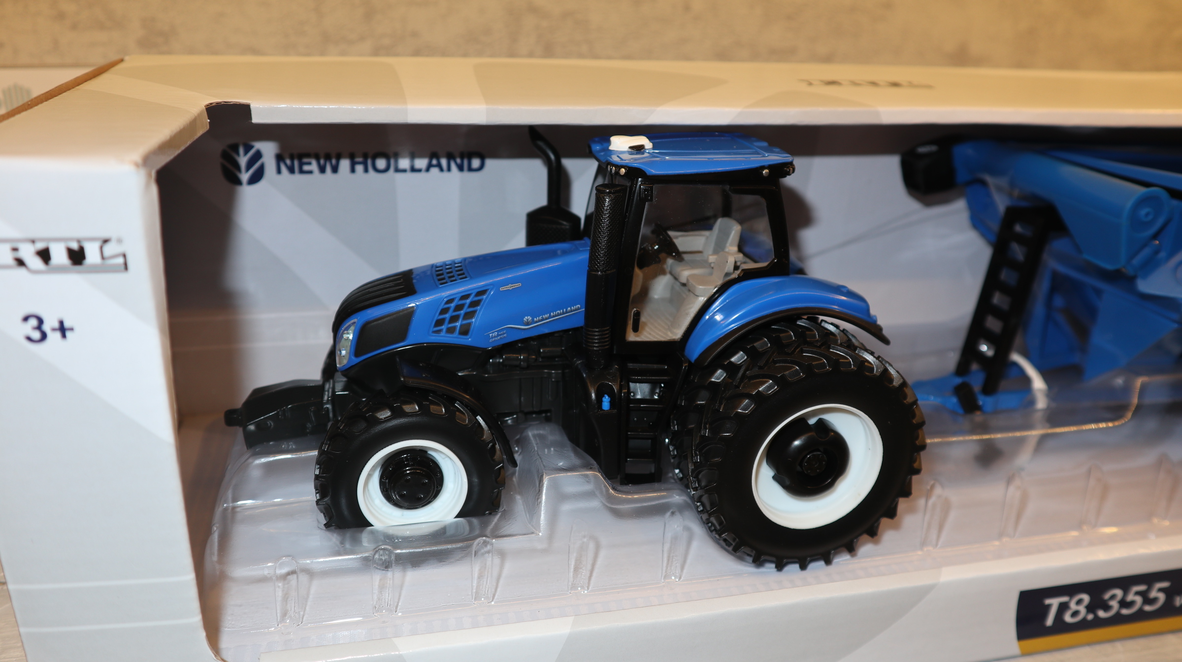 Produktinformationen "ERTL Britains 61028 in 1:32, New Holland T8.355 mit Überladewagen, USA-Modell, NEU in OVP"