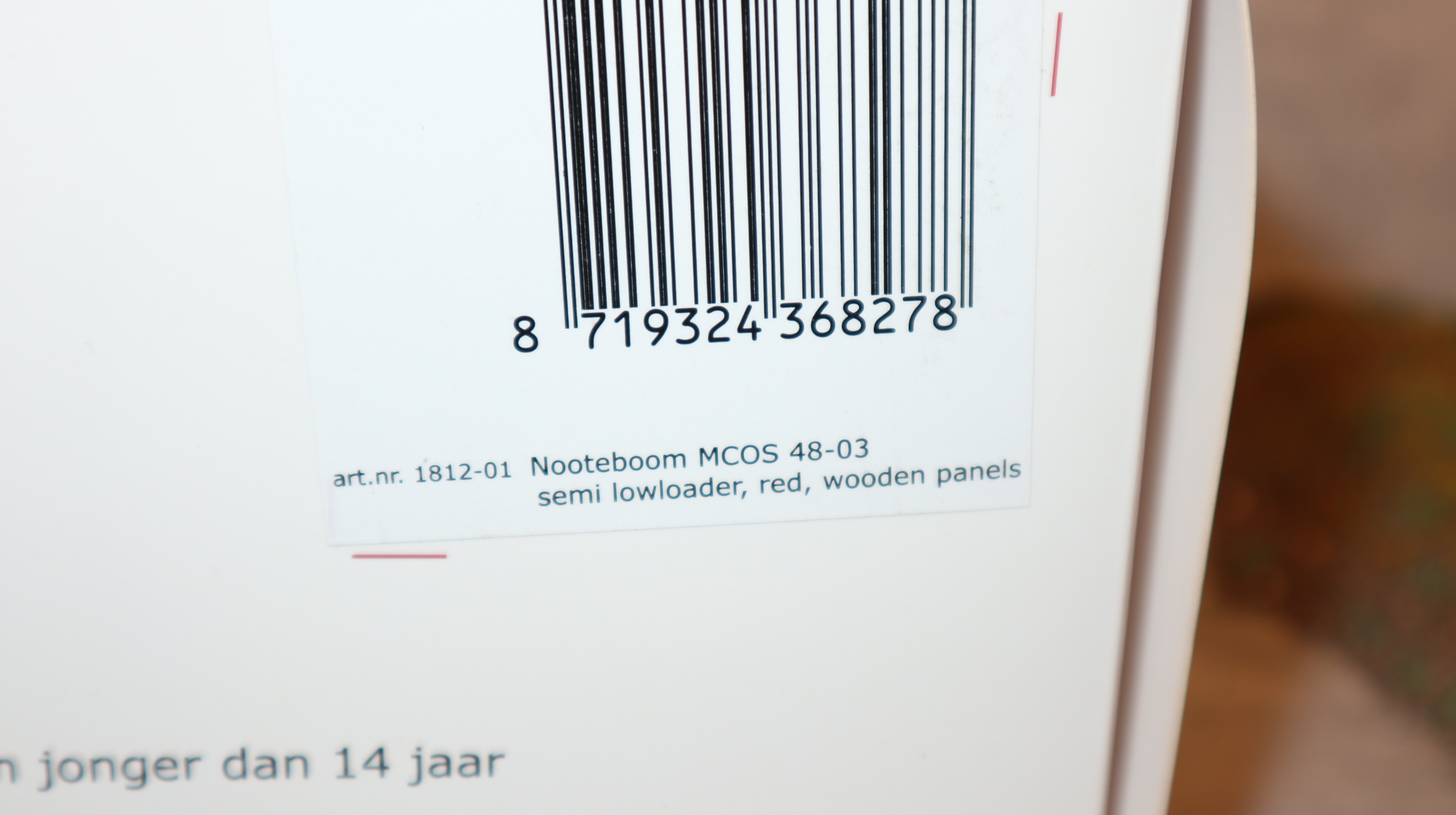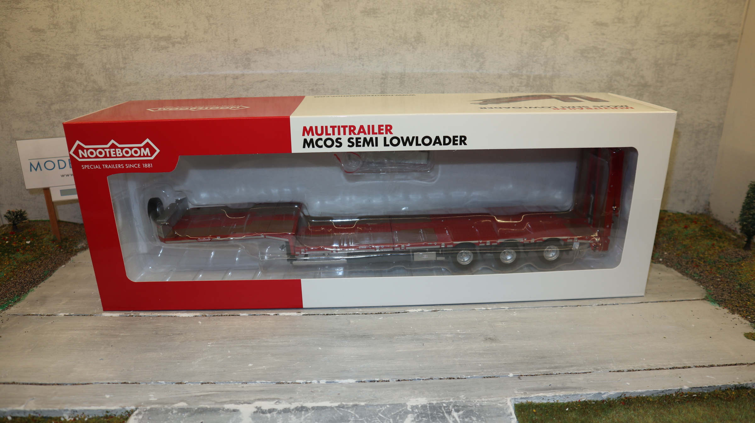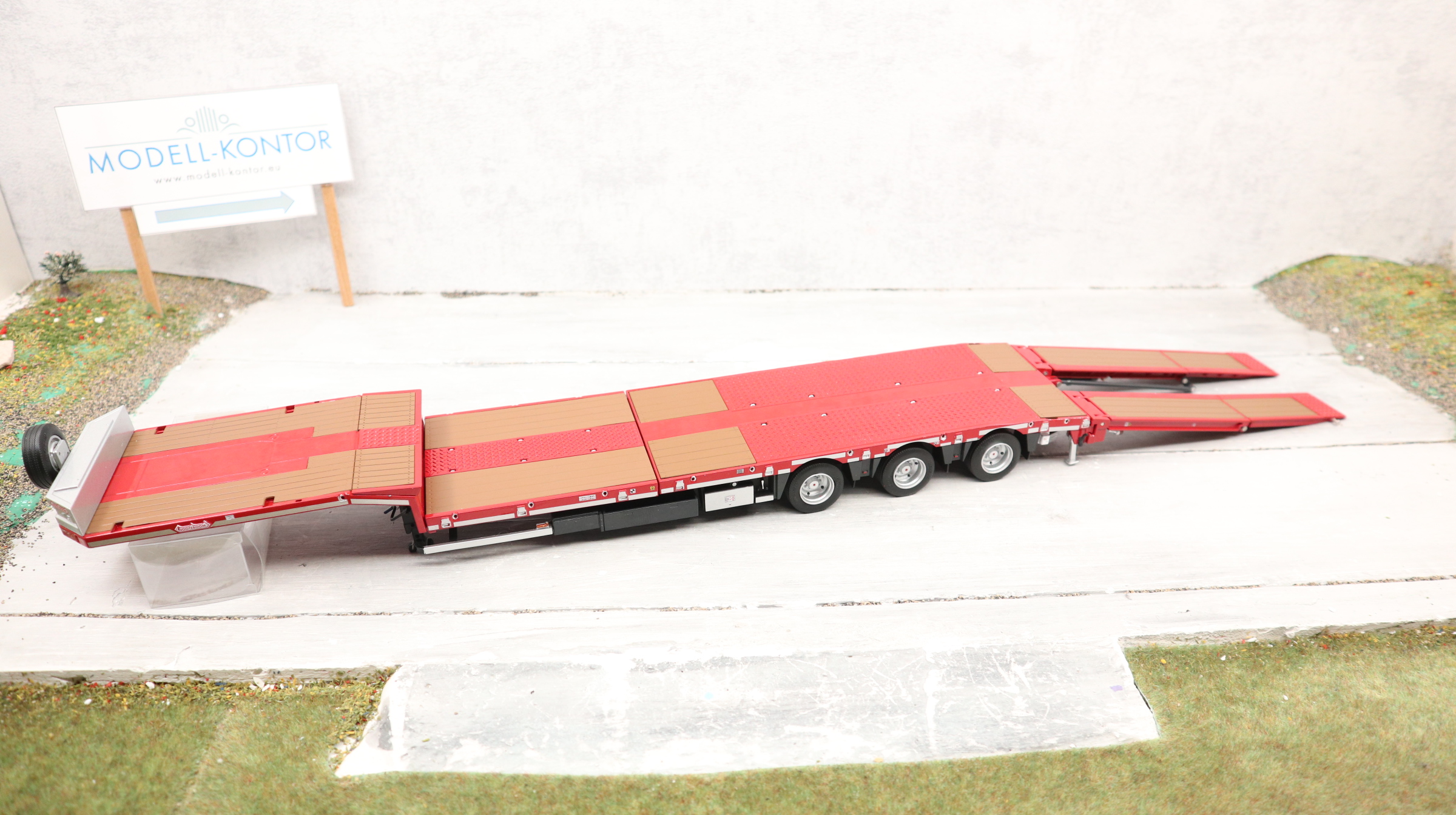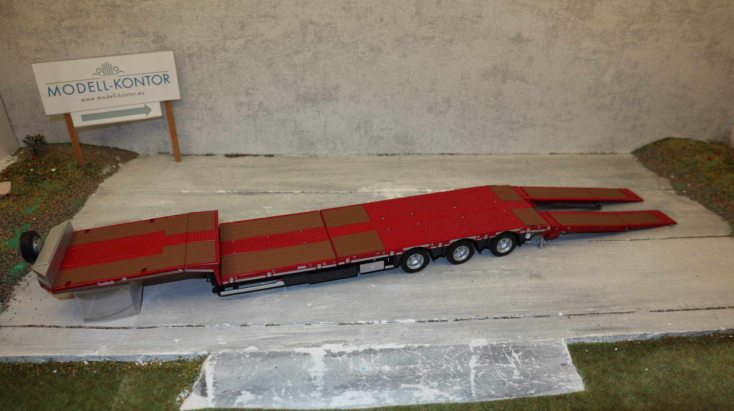 Produktinformationen "MarGe 1812-01 in 1:32, Nooteboom MCOS 48-03 Semi Tieflader ROT mit Holz-Auflagen, NEU in OVP"